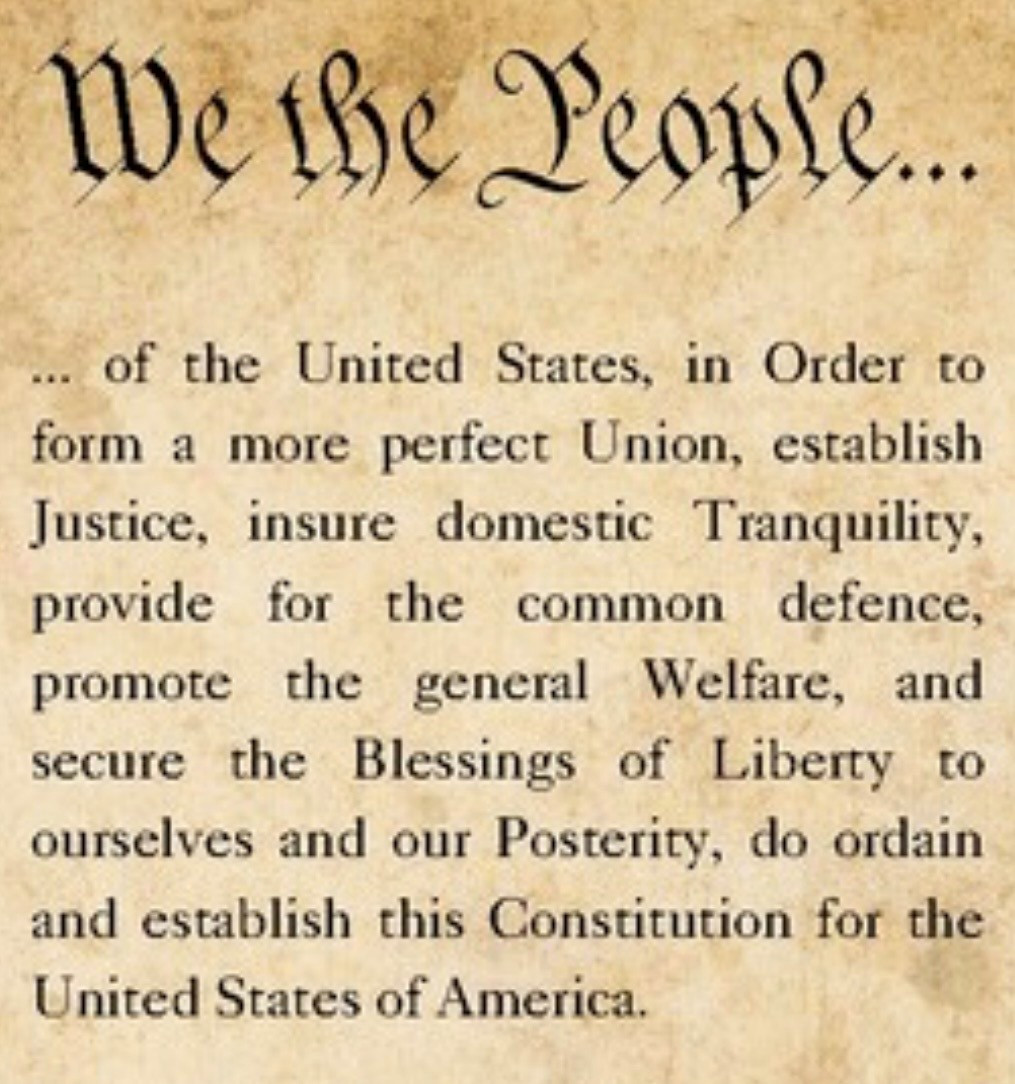 “We the People of the United States, in Order to form a more perfect Union, establish Justice, ensure domestic Tranquility, provide for the common defense, promote the general Welfare, and secure the Blessings of Liberty to ourselves and our Posterity, do ordain and establish this Constitution for the United States of America."