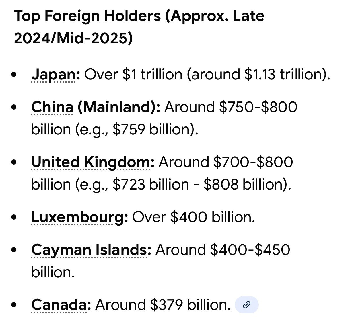 Next, do you know what props up our debt? Other countries not coordinating to call in the money we owe them. How much money do we owe other NATO countries?